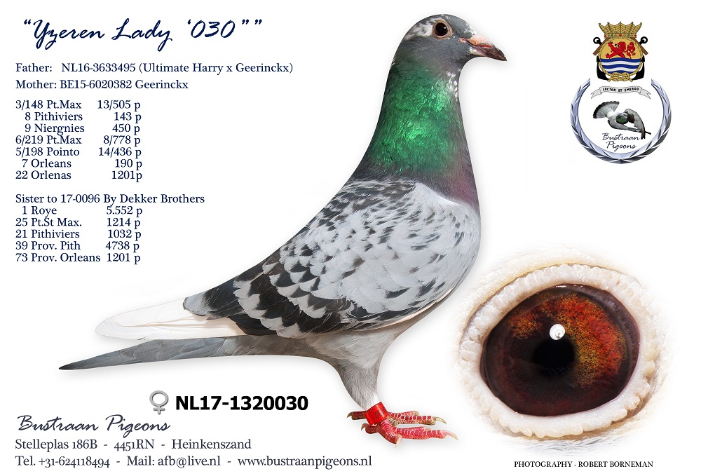 De moeder van “Ultimate Harry” is de 13/200 en ook zij is geboren uit samenkweek, maar nu met Albert Derwa, en wel met zijn superduivin “Paulien”. Die stond gekoppeld tegen onze “Harry”.