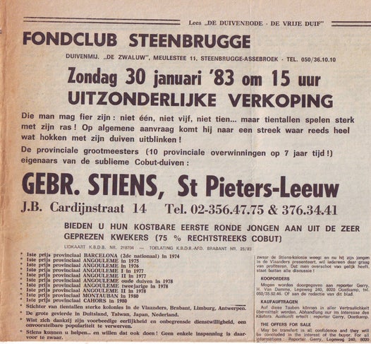 Ik kocht ook te St – Pieters-Leeuw , bij de gebroeders Stiens , in het voorjaar van 1989, twee prachtige late duivinnen van 88 , oa een kleindochter van de “Kleine Rode”