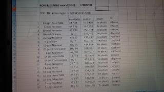 Deze week alleen de cijfers van Ron en Dennis van Veggel Utrecht. In 2015 hebben ze bij mij enkele duiven gehaald. Daar het tussen ons klikte is er daarna ieder jaar een ronde van de kwekers naar Utrecht gegaan. Ze noemen zich het satelliethok Ad de Jong. Ron en Dennis zijn heel trots op hun behaalde prestaties en ik ben niet minder trots dat ze met duiven van hier zo te keer gaan. Het zijn natuurlijk ook topmelkers anders kan je niet zo vliegen het hele jaar. Als alles goed gaat dan gaat er in 2019 weer een ronde naar het satelliet hok in Utrecht. Goede gezondheid en hou je haaks.