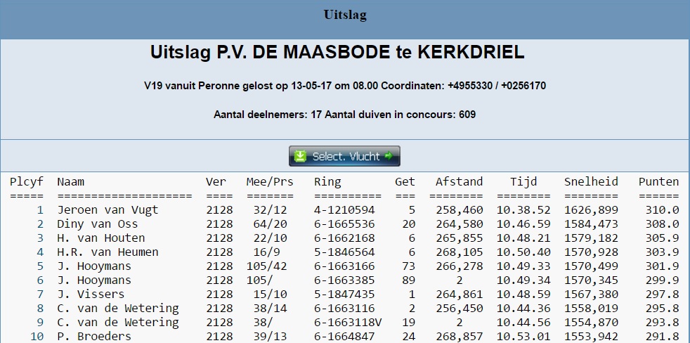 Opvallend overigens dat de eerste 4 duiven bij deze lastige vlucht jaarlingen zijn.