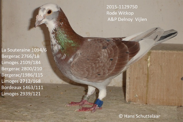 Zijn oudere broer NL12-1946050 met dezelfde naam (Rode Witkop) werd in 2013 al 3e duifkampioen jaarlingen morgenlossing van afdeling Limburg met o.a. een 8e prov. Bergerac en 51e prov. Cahors.