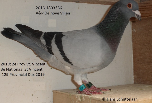is dezelfde duif die 2e Provinciaal St Vincent vloog dit jaar en nu 68e Prov. Dax. En 3e nationaal. St Vincent. Top duif dus. Vloog eerder al; Cahors 2017; achter de/ zijn de prijzen in het samenspel.;270/45-429/64- Prov. 1739/254