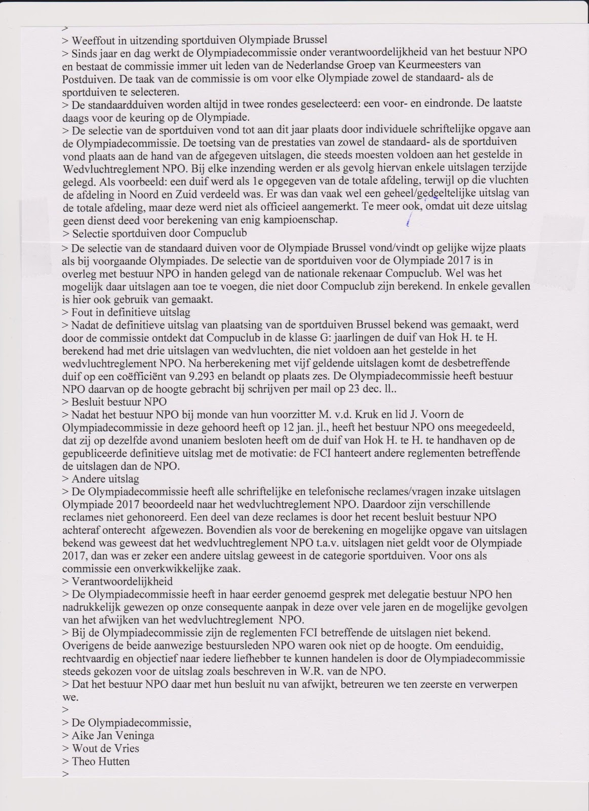 Ter kennisneming vindt u in de bijlage de brief welke de Olympiadecommissie gepubliceerd wilde zien in “ Op de Hoogte “ alsmede “ Het Spoort Der Kampioenen “.