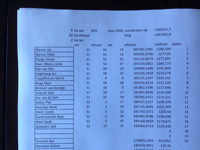 Het zal misschien een onregelmatige vlucht worden door de buitjes maar de overige omstandigheden zijn goed. In de loop van de middag de uitslag van Heemskerk.