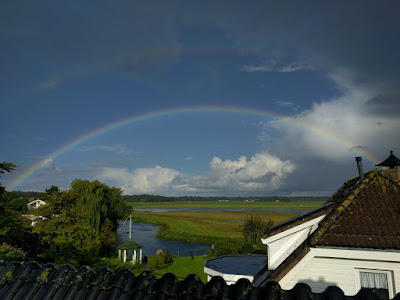De duiven zijn gelost om 9.30 uur en op dat zelfde moment valt er in Heemskerk zo'n lokaal buitje met ook volop zonneschijn, gevolg prachtige regenboog.