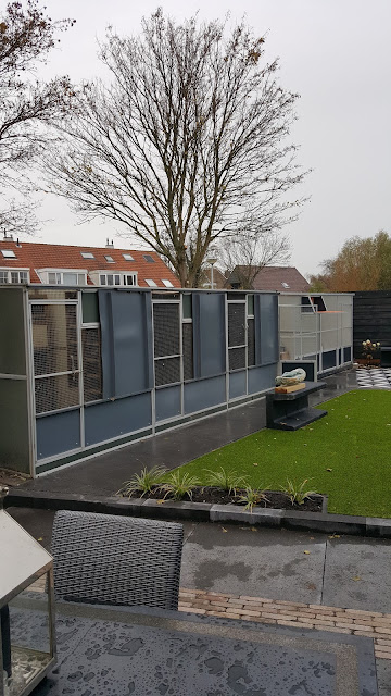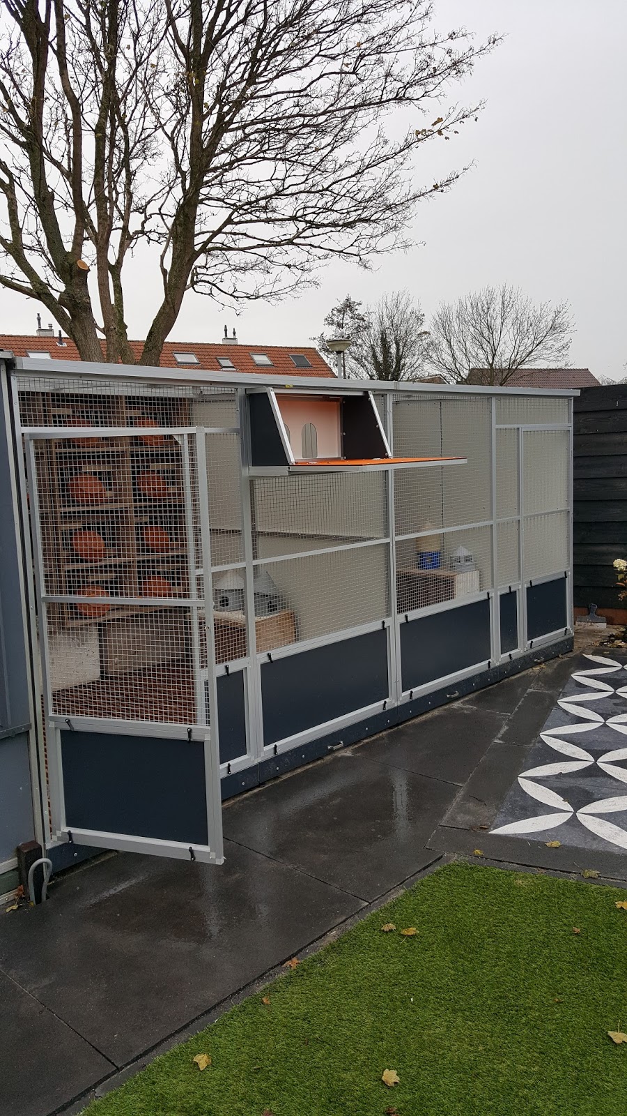 Afgelopen maandag de bestelde broedhokken bij de gebr. Fanger opgehaald, aangekomen waren de mannen nieuwsgierig het nieuwe onderkomen, dus even de telefoon erbij om de foto’s te bekijken. De eerste opmerking ‘wat heb een uitzicht’ (daar sta je zelf niet meer bij stil). Niet veel later nam Frans mij mee naar zijn accommodatie want ik had de hokken van de gebroeders wel eens op de d.v.d. gezien maar nog nooit in het ‘echt’. Het is daar echt woekeren met de ruimte en de duiven zien thuiskomen is daar onmogelijk want de hokken zijn volledig ingebouwd tussen de magazijnhallen. Wat ik op de d.v.d. heb gezien, heb ik nu in levende lijve mogen aanschouwen en kun je alleen maar constateren dat door de niet alledaagse omstandigheden over alles goed is na gedacht en aangepast. Nog een paar duiven in handen gekregen en dan vliegt de tijd……goede duiven daar draait het om en top liefhebbers die ‘alles’ zien en daarnaast dus de best mogelijke omstandigheden creëren voor de duiven en dat het gelukt is, bewijzen de uitslagen al jaren. Hierna snel naar huis om de broedhokken te plaatsen. De nieuwe rennen laat ik nog een weekje ‘leeg staan’, kan alles nog een beetje drogen.