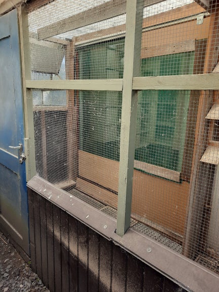 Het front van het hok bestaat grotendeels uit draad en in deze tijd van extremen en klimaatopwarming , waar hier te Lissewege eigenlijk niet veel van te merken is .Waar de temperatuur 's morgens in heel de maand mei met moeite boven het vriespunt klom , moest ik iets uitvinden .